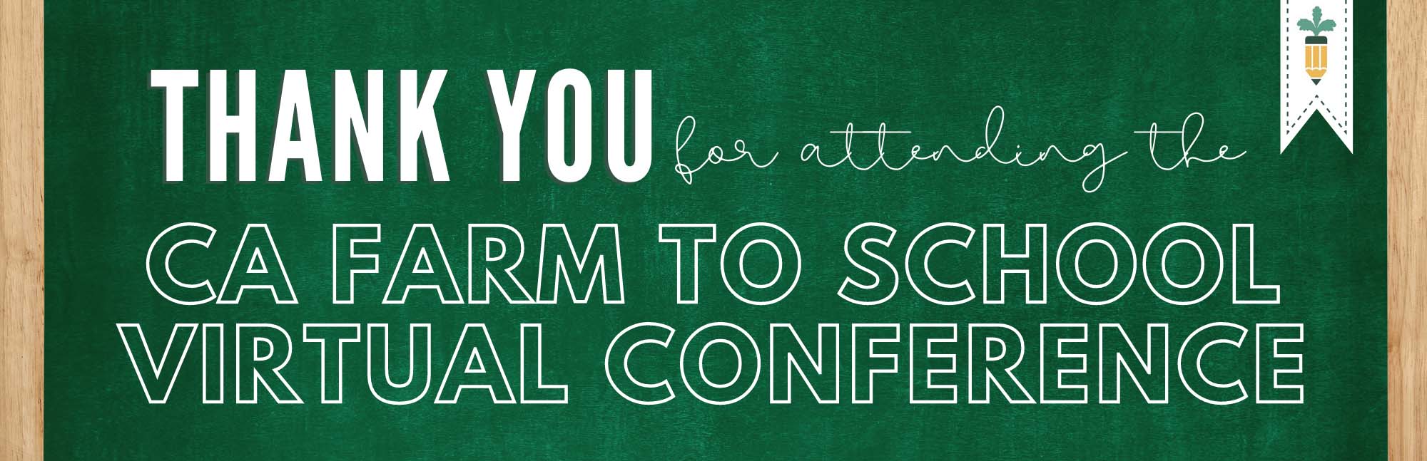 Thank you to all who participated in the 2021 California Farm to School Conference! The conference brought together farm to school practitioners from across the school food and education spaces, offering professional development, networking and the sharing of best practices. This year’s agenda focused on expanding food access, increasing equity, lifting student voice, and opening school markets for California specialty crop producers, with an emphasis on establishing farm to school programs that connect classrooms, cafeterias and communities.