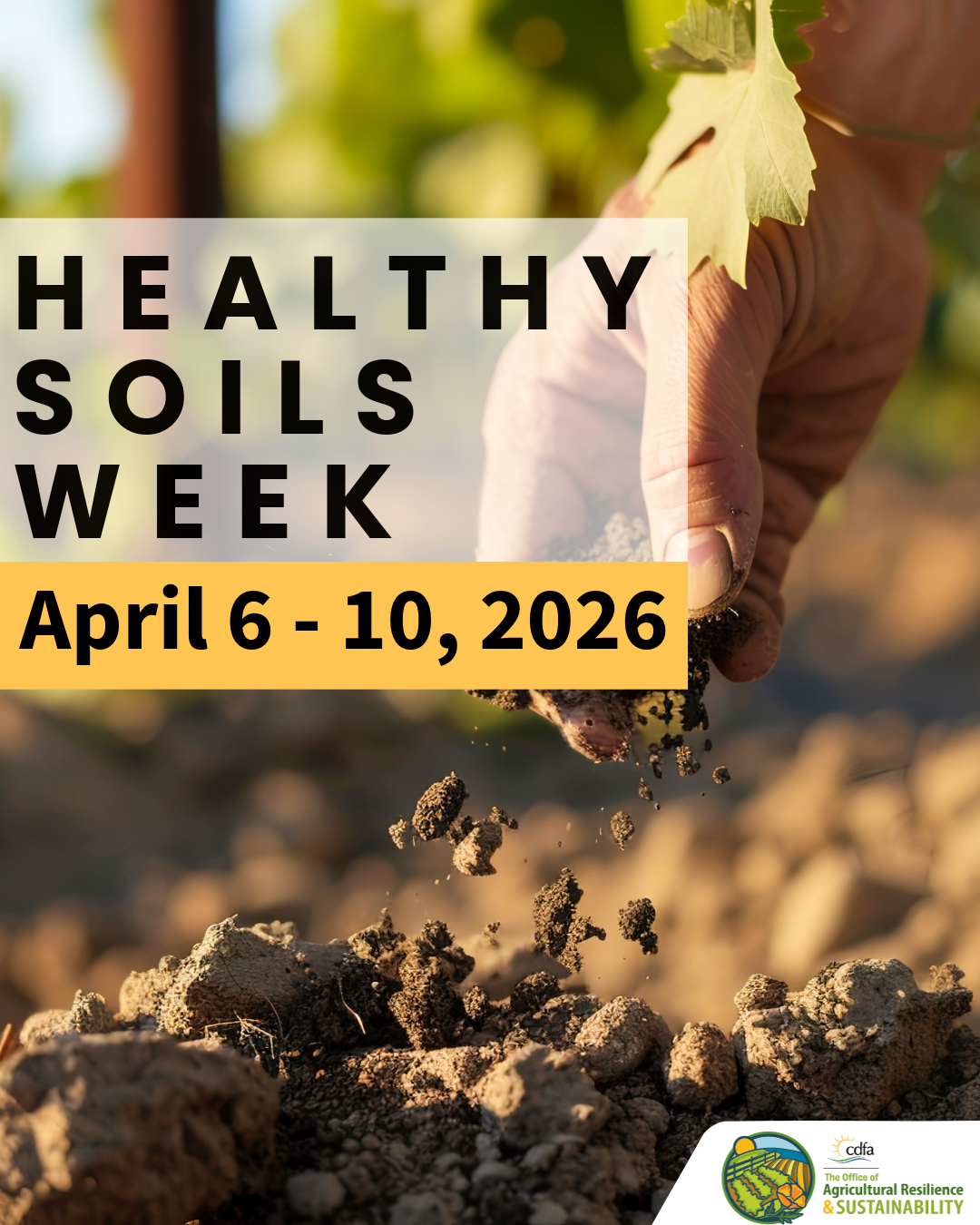 For more details and resources, follow @cdfa_oars on Instagram, @CDFA_OARS on X, and CDFA Office of Agricultural Resilience and Sustainability on Facebook. #CDFAHealthySoilsWeek