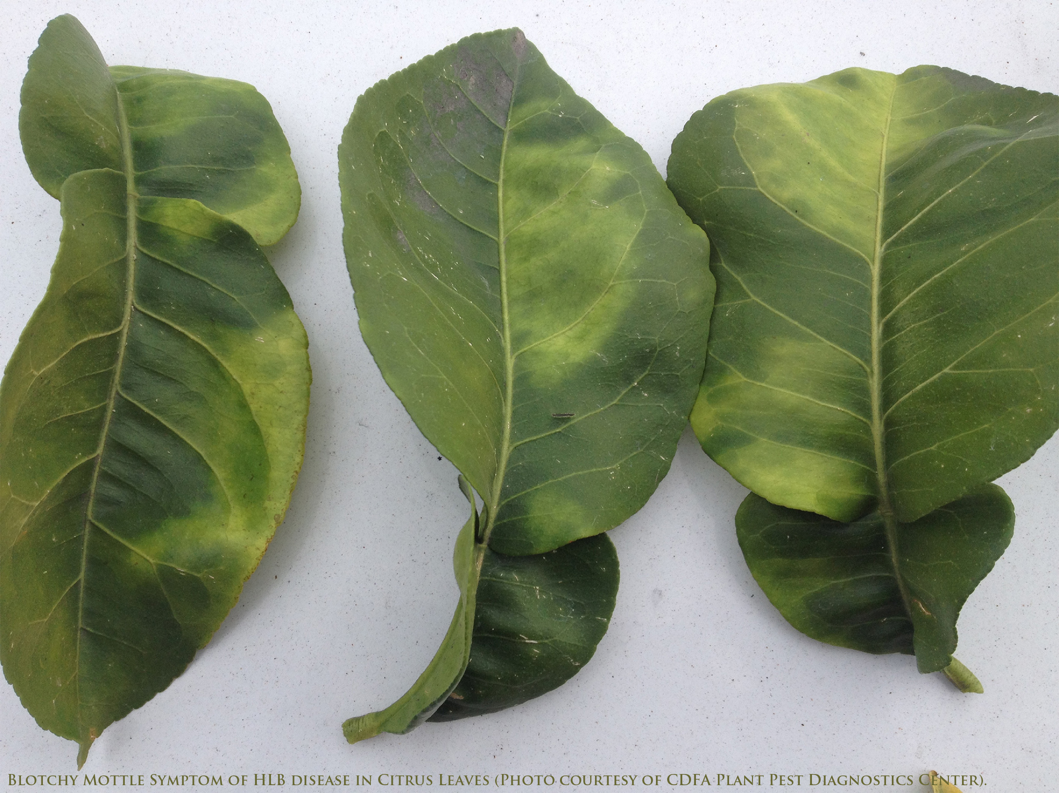 The plant disease known as Huanglongbing (HLB) is believed to be caused by a phloem-restricted bacterium which is vectored by the Asian Citrus Psyllid (ACP). |